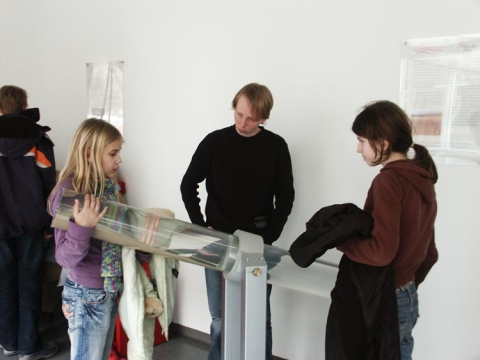 Anschließend strömten die eingeladenen Schülerinnen und Schüler ins Foyer des Hörsaals, um die Ausstellung MexLab Experimentum zu erkunden. Und wie die Fotos im Archiv zeigen, geschah dies mit viel Neugierde und großen staunenden Augen. Aber auch mit einem zufriedenen Lächeln, wenn die Schülerinnen und Schüler etwas dazu gelernt hatten und ihren physikalischen Horizont wieder ein Stückchen erweitern konnten.