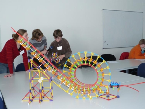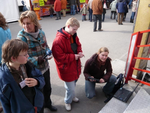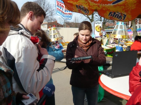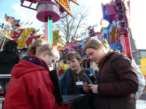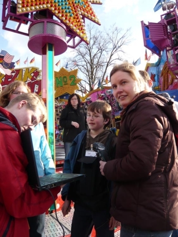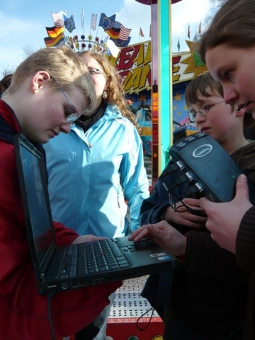 „ Und wieder einsteigen und wieder dabei sein!“ - wer kennt sie nicht diese Worte vom größten Münsteraner Volksfest, dem Send? Aber wer hat sie schon einmal mit Physik in Verbindung gebracht? Die Teilnehmerinnen und Teilnehmer des Workshops „Physik auf dem Send“ haben genau dies getan. Mit Hilfe von Sensoren, die Kapazitätsänderungen anzeigen, haben sie zunächst an Karusselmodellen erforscht, welchen Beschleunigungskräften die Fahrgäste ausgesetzt sind. Anschließend führten sie diese Messungen an sich selbst vor Ort durch - und trotzten mutig jeglicher Drehbewegung in alle drei Raumrichtungen in der Achterbahn, im Breakdance oder im Kettenkarussell.