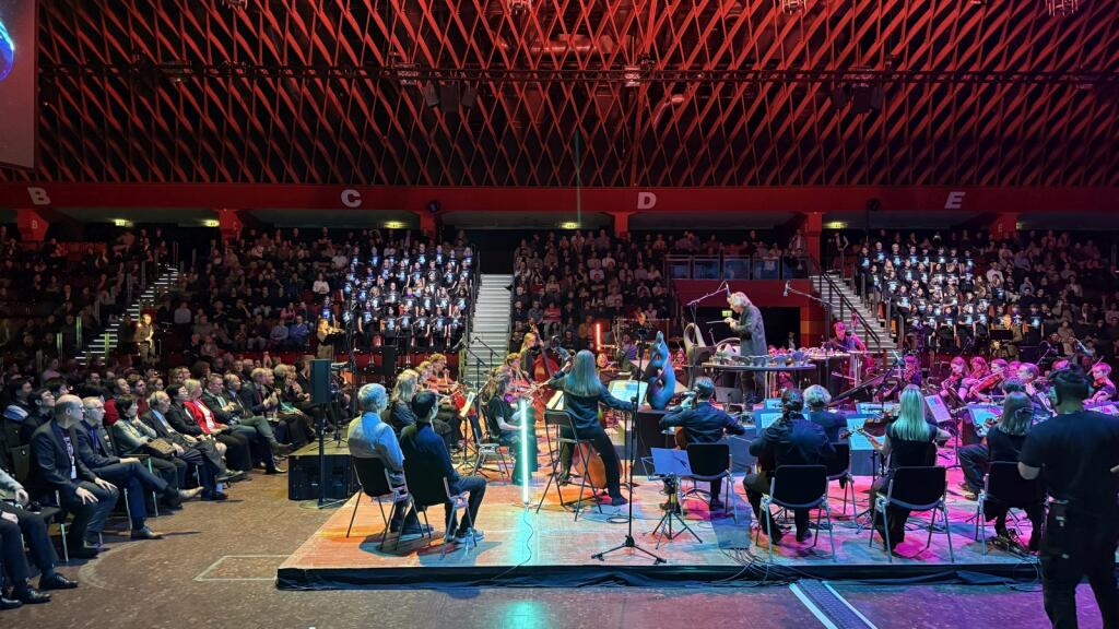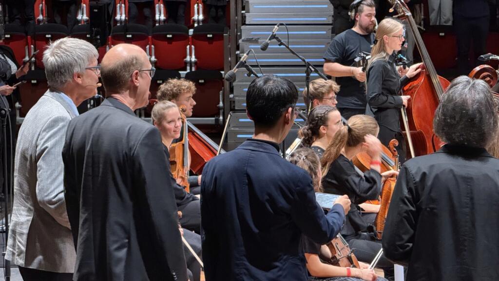 Fotoimpressionen vom Abschlusskonzert - der musikalischen Präsentation des Komponisten Yannik Paget. Sein Werk “Fundamental Interactions” wurde speziell für die Abschlussfeier in Münster angepasst und erweitert. Dabei wird er musikalisch von Studierenden und Schüler*innen und Special Guest David Rauterberg aus Münster begleitet.
