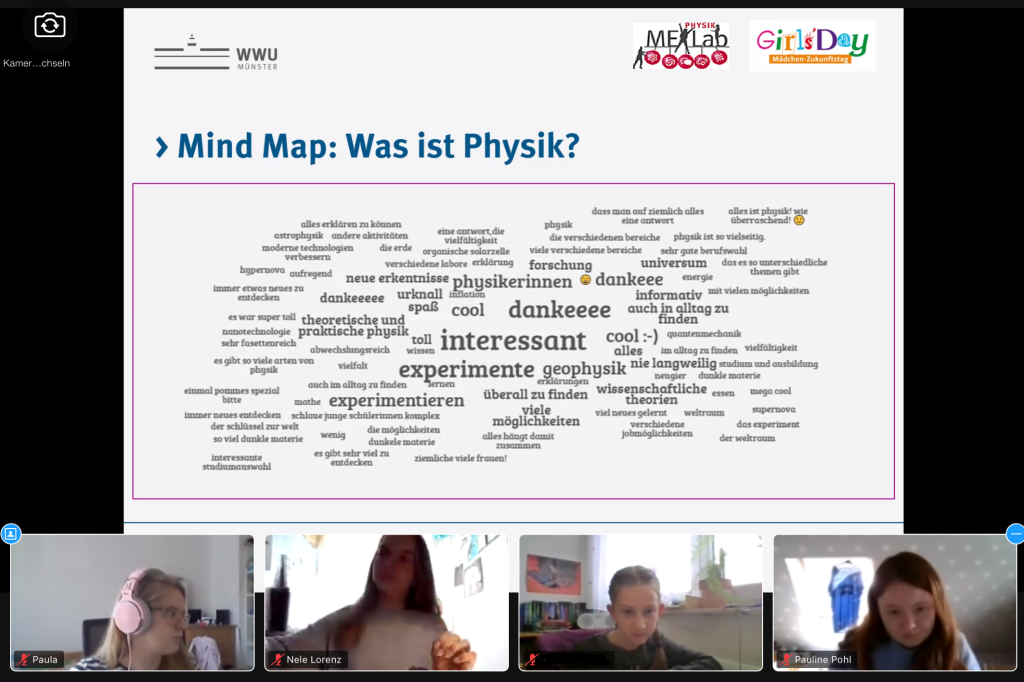 Beim diesjährigen Girls’Day am Fachbereich Physik der Westfälischen Wilhelms-Universität Münster war in diesem Jahr alles anders und doch so wie immer. Bereits zum 19. Mal wurde hier am bundesweiten Girls’Day ein Angebot für Schülerinnen organisiert. Die Herausforderung bestand in diesem Jahr darin, die altbewährten Elemente des Girls’Day in den digitalen Raum zu überführen – und es hat geklappt!