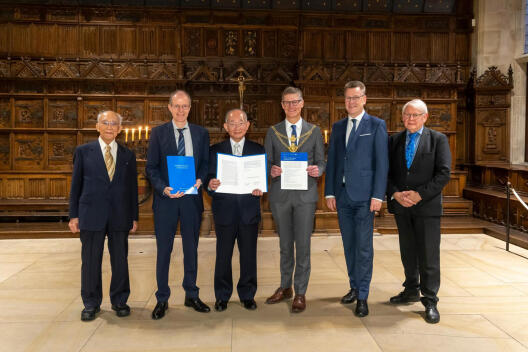 In Münster, the city of the Peace of Westphalia, the Physical Societies of Japan (JPS) and Germany (DPG) have addressed the public with a joint ‘Declaration for the Future’ in the quantum year 2025. In it, they advocate using scientific findings for peaceful purposes and for shaping a future worth living. They also call for a strengthening of existing international commitments to refrain from the development, production, testing, deployment or use of weapons of mass destruction, in particular nuclear weapons. The presidents of the two societies, Prof Seiji Miyashita (JPS) and Prof Klaus Richter (DPG), signed the ‘Declaration for the Future’ on 14 November at Münster City Hall.