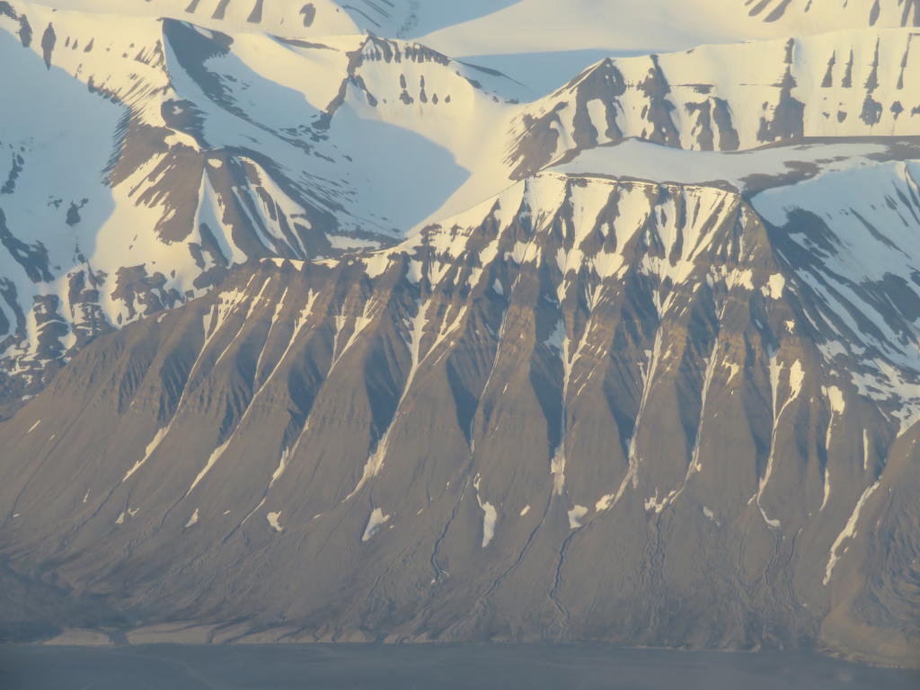 Mit etwas Verspätung verlassen wir Oslo Richtung Norden. Der Flug verläuft ruhig und unspektakulär. Die meisten Leute schlafen oder daddeln auf ihren Handys rum. Ich habe das Vergnügen eine Bachelorarbeit über die Alter und die rheologischen Eigenschaften von Lavaströmen auf dem Mars zu lesen. Ich kämpfe mit dem Schlaf und auch der Kaffee hilft nur kurz. Spitzbergen empfängt uns mit weißen Gipfeln und Gletschern, die aus dem Wolkenmeer ragen und in der Sonne glänzen. Einfach Klasse – auch von einem Gangplatz aus bei dreckiger Scheibe. Trotzdem gelingen mir ein paar ganz gute Fotos. Und Jan kriegt zum Einstieg einen Fensterplatz und wolkenfreies Wetter – besser geht es eigentlich nicht. Wir fliegen das Adventdalen Richtung Westen und ich kriege einen schönen Ausblick auf „meinen“ Operafjellet. Irgendwann werde ich mir diesen Blockgletscher noch einmal im Detail anschauen! Auch wenn bei den anderen keine große Begeisterung herrscht, weil er relativ schwierig zu erreichen ist, obwohl er eigentlich genau gegenüber von Longyearbyen liegt. Die schönen Ausblicke beim Anflug auf Longyearbyen werden jäh durch eine sehr abrupte Landung unterbrochen. Unser Flugkapitän muss ordentlich in die Eisen steigen, letztlich sind wir aber bei bestem Wetter – fast wolkenlos und +8 Grad Celsius sicher in Longyearbyen angekommen. Jan ist begeistert und erzählt mir sofort wie ähnlich die Landschaft zum Mars ist. Und seine Fotos sind wirklich sehr schön und untermauern seine Begeisterung. Allein deshalb war es schon gut, ihn mitgenommen zu haben. Sein breites Grinsen ist unbezahlbar. Das Gepäck zu erhalten dauert etwas, aber die gute Nachricht ist, dass alles angekommen ist! Hurrraahh! Es wäre sicher nicht schön hier auf warme Sachen warten zu müssen. Der Taxifahrer von letztem Jahr bringt uns in unsere Stammunterkunft, das Mary-Anns Polarrigg, das wir seit mehreren Jahren immer wieder gerne buchen. Vertraute Gastlichkeit! Und wir schaffen es tatsächlich noch zwei Mack Biere zu bekommen bevor wir um 3:16 Uhr ins Bett fallen. Die ersten 24 Stunden unseres Abenteuers sind vorbei. Morgen gibt es zwischen 7:00 und 10:00 Uhr Frühstück und ich denke, dass wir nicht ganz pünktlich um 7:00 Uhr dort aufschlagen werden. Man wird sehen…