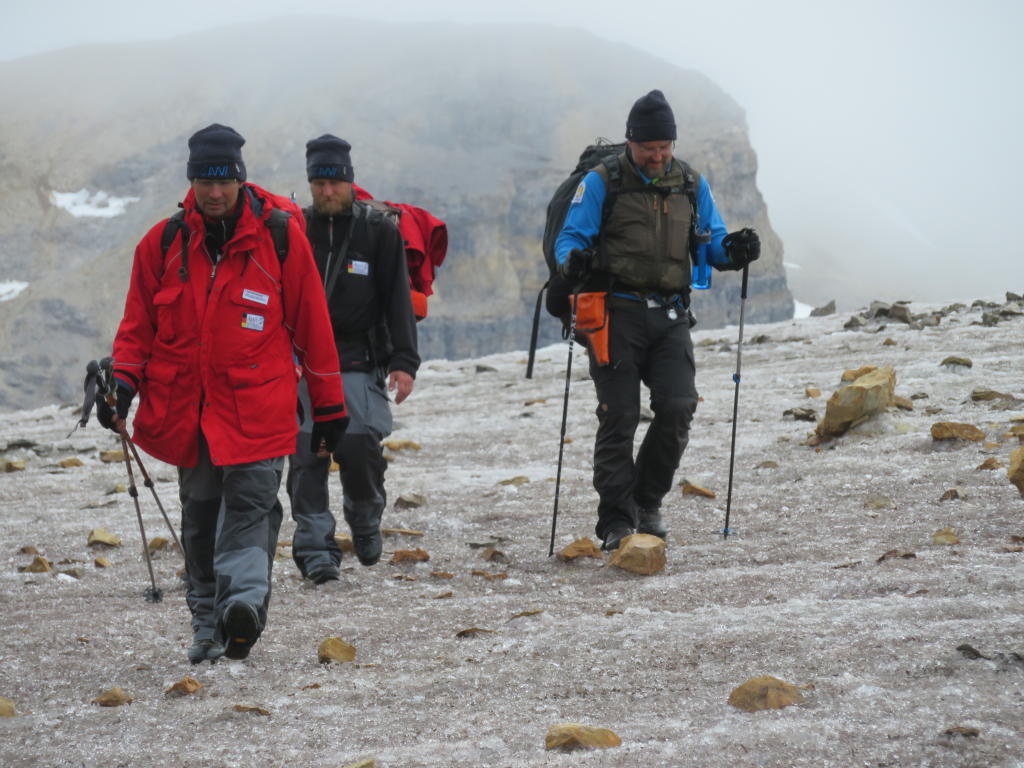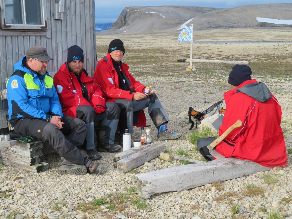 Nun, da sich unsere Reise dem Ende nähert, ist es Zeit „Danke“ zu sagen. Unser Dank gilt speziell dem sagenhaften AWIPEV Team in Ny Alesund, Gregory, Rudi, Raphaelle, Gwendal, die extrem hilfsbereit waren und uns sehr entgegen gekommen sind. Angefangen von der Planung des Schießkurses, über den Transport von Material und Leuten zur Geopol-Hütte und weiter zur Daerten-Hütte, bis hin zur Abholung unseres Gepäcks von der Daerten-Hütte und zum Ausleihen des Schlauchboots – alles hat perfekt funktioniert! Vielen Dank für Eure Unterstützung, die uns unsere Geländearbeit überhaupt erst ermöglicht hat. Es hat wirklich Spaß gemacht, mit Euch zu arbeiten und wir hoffen, dass wir Euch nächstes Jahr wiedersehen werden! Auch der AWI Bekleidungskammer gilt dieses Jahr unser spezieller Dank. Seit Jahren packen sie immer extrem hilfreiche und praktische Bekleidung für uns zusammen und verschicken sie in Seesäcke verpackt nach Ny-Alesund. Dieses Jahr hatte ich vergessen einen Termin zur Einkleidung zu vereinbaren und trotzdem hat alles hervorragend funktioniert und wir hatten, dank der unbürokratischen Hilfe, unsere Bekleidung pünktlich vor Ort. Also, dem AWI und seinen Leuten ein dickes „Dankeschön“ für die Unterstützung unserer kleinen Expedition!