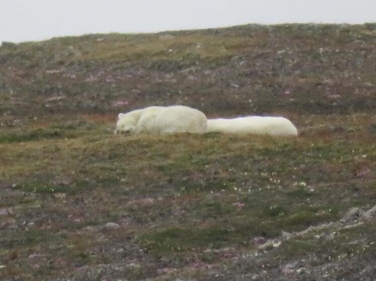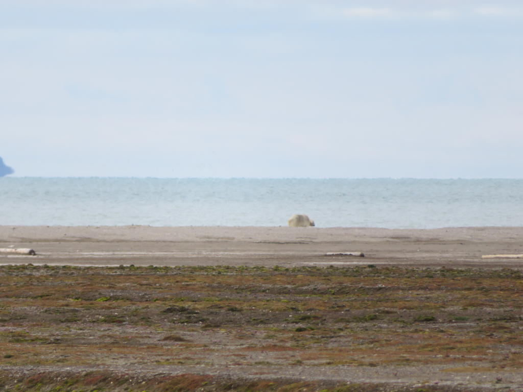 Der erste Eisbär der Saison. Er zieht in ca. 500m Abstand am Starnd an uns vorbei© KOP 132 SPLAM