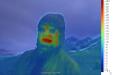 Unsere Erosionsstruktur mit der IR Kamera aufgenommen, die Wärmebilder aufnimmt. Das Innere der Struktur ist deutlich kälter (blau) als die Umgebung (rot)© KOP 132 SPLAM