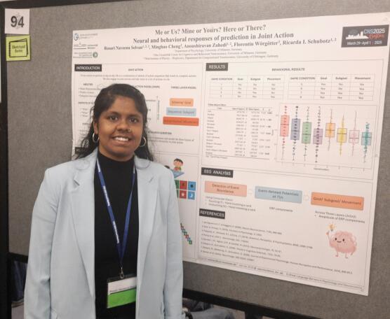++ 01.04.2025 ++ Rosari presented her current work on Prediction in Joint Action at the Cognitive Neuroscience Society’s CNS2025 in Boston, USA.