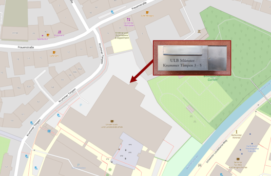 - Einwurf in den Hausbriefkasten der ULB am (Personal-)Hintereingang: Krummer Timpen 3–5