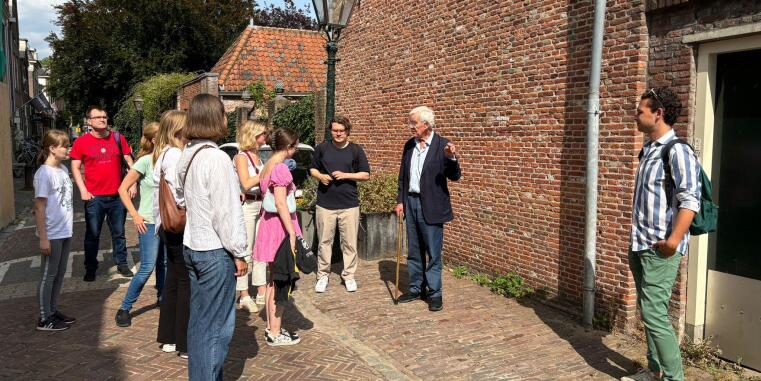 Im Anschluss daran hatte das Team die besondere Ehre, Prof. em. Willem Zwalve, Doktorvater von Prof’in Daalder und vormals Professor an der Universiteit Leiden, und seine Frau Titia Zwalve kennenzulernen. Prof. Zwalve führte das Team auf eine außergewöhnliche rechtshistorische Entdeckungstour durch Leiden. Wussten Sie, dass zwei Tore in der Innenstadt, von denen eines noch heute als Burgpoort bekannt ist, einst einen sogenannten rechtsfreien Raum vor der Leidener Burgruine umfassten? Dieser Raum diente damals als Zufluchtsort für Menschen, die der Rechtsvollstreckung entgehen wollten. Ein weiteres Überbleibsel aus dem Mittelalter sind die zwei roten gekreuzten Schlüssel, die viele Brücken und Tore in Leiden schmücken. Diese symbolisieren den Apostel Petrus, den Schutzheiligen der Stadt, dem nachgesagt wird, er verfüge über die „Schlüssel zum Himmelreich“.
