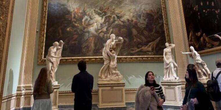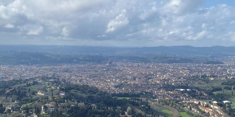 Am Dienstag, unserem letzten Tag, besuchten wir die Galleria dell’Accademia. Nach einem einführenden Vortrag erkundeten wir die Sammlung – ein Spaziergang durch die Kunstgeschichte von der Gotik über die Renaissance bis zum Barock. Höhepunkt war Michelangelos berühmte Skulptur des David. Im Anschluss ging es ins Kloster San Marco, wo wir nicht nur die eindrucksvollen Fresken Fra Angelicos betrachteten, sondern auch über die kontroverse Figur Savonarola sprachen. Ein kurzer Abstecher zur Basilika Santa Croce rundete den Nachmittag ab. Zum Abschluss der Reise führte uns ein Spaziergang zum Piazzale Michelangelo. Der Blick über das abendliche Florenz bot den perfekten Rahmen für den letzten Vortrag der Exkursion. Mit einem letzten gemeinsamen Abendessen endete eine rundum gelungene Reise.