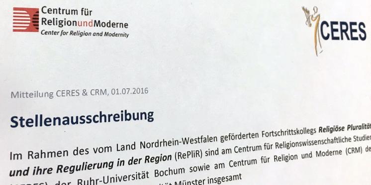 Im Rahmen des vom Land Nordrhein-Westfalen geförderten Fortschrittskollegs Religiöse Pluralität und ihre Regulierung in der Region (RePliR) ist am Centrum für Religion und Moderne (CRM) der Westfälischen Wilhelms-Universität Münster eine