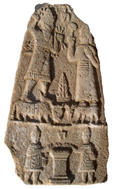 Eine 2007 geborgene Basaltstele aus römischer Zeit, die den Gott mit seiner weiblichen Partnerin zeigt.