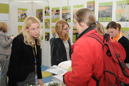 Am Stand des Exzellenzclusters im „Zentrum Dialog mit den Wissenschaften“