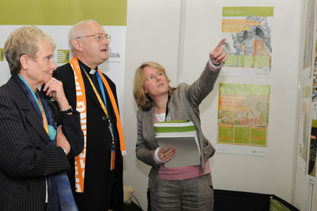 Erzbischof Zollitsch am ÖKT-Stand des Exzellenzclusters „Religion und Politik“