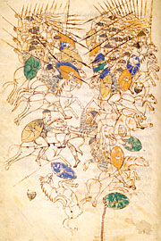 Die Makkabäerbücher genossen im Mittelalter eine hohe Wertschätzung, wie aufwendig illustrierte Handschriften belegen. (Federzeichnung aus dem Codex Perizoni 17, Universitätsbibliothek Leiden, entstanden ca. 925)