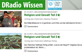 Vorträge der Ringvorlesung „Religion und Gewalt“ bei DRadio Wissen „Hörsaal“