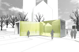 „Die Idee, einen Pavillon auf dem Domplatz zu errichten, ist zunächst aus der Raumnot geboren“, erläutert der Direktor des LWL-Landesmuseum für Kunst und Kulturgeschichte, Dr. Hermann Arnhold. Durch den Neubau des Museums und die zahlreichen Leihgaben der Ausstellung „Goldene Pracht“ herrscht im Altbau am Domplatz Platzmangel. Deshalb musste für die Kunstvermittlung ein neuer Raum gesucht werden. „Mit dem Pavillon haben wir jetzt eine architektonisch überzeugende Lösung gefunden: Der sternförmige Bau bietet Platz für rund 30 Workshop-Teilnehmer und einen Informationspunkt.“ Auf dem zentral gelegenen Domplatz wird der Pavillon zwischen dem Bischöflichen Palais und dem Westportal des Doms errichtet und schon von weitem sichtbar sein. „Gleichzeitig verbindet er die beiden Ausstellungsorte LWL-Landesmuseum und Domkammer symbolisch miteinander“, sagt der Direktor der Domkammer, Dr. Udo Grote.