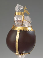 Kokosnuss-Reliquiar, um 1230/ 50, mit Lamm aus persischem Bergkristall, 10. Jh.