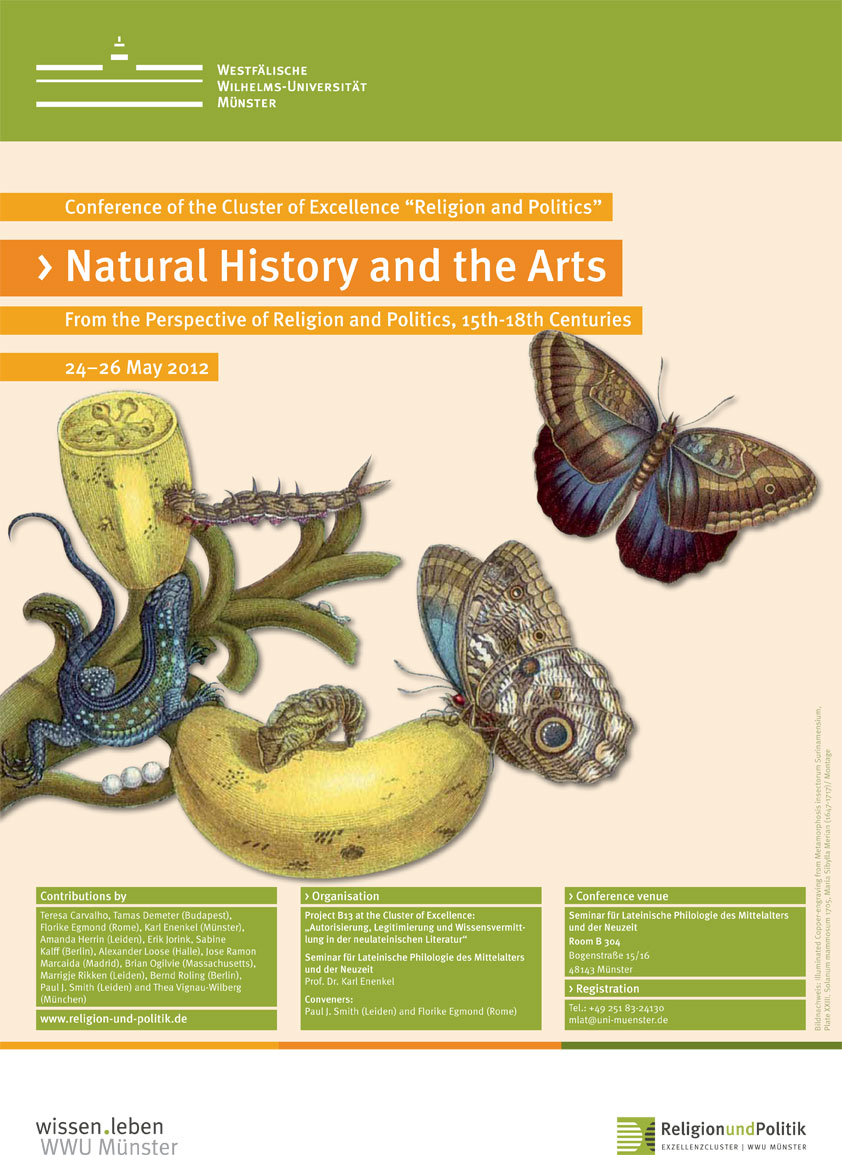 Mit historischen Umbrüchen in der Naturgeschichtsschreibung befasst sich eine Tagung am Exzellenzcluster „Religion und Politik“ vom 24. bis 26. Mai. Organisiert wird die Konferenz „Natural History and the Arts from the Perspective of Religion and Politics, 15th-18th centuries“ (Naturgeschichtsschreibung und die Künste aus der Perspektive von Religion und Politik, 15. bis 18. Jahrhundert) von Philologe Prof. Dr. Karl Enenkel, der am Exzellenzcluster das Cluster-Projekt B13 „Autorisierung, Legitimierung und Wissensvermittlung in der neulateinischen Literatur“ leitet.