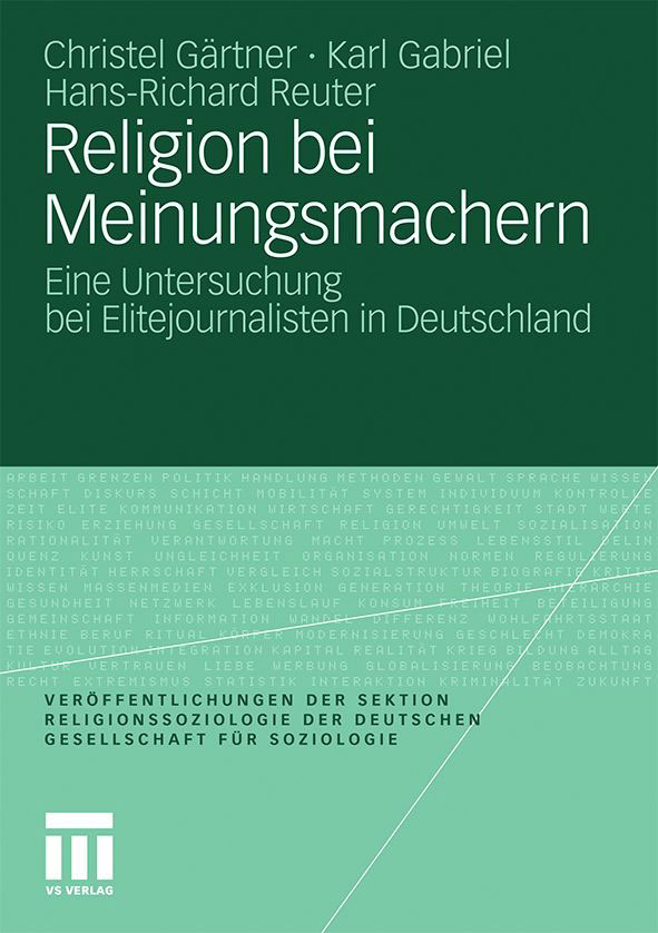 Hinweis: Christel Gärtner, Karl Gabriel, Hans-Richard Reuter: Religion bei Meinungsmachern. Eine Untersuchung bei Elite-Journalisten in Deutschland, Wiesbaden: Springer VS, 2012. ISBN 978-3-531-18443-2, 300 Seiten, 39,95 Euro.