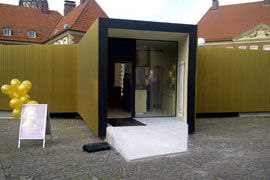 Goldener Glanz auf dem Domplatz: Seit wenigen Tagen ist der goldene Pavillon in Betrieb. Der Bau wurde für die Ausstellung „Goldene Pracht. Mittelalterliche Schatzkunst in Westfalen“ (bis 28. Mai 2012) errichtet, die der Landschaftsverband Westfalen-Lippe (LWL), die Domkammer der Kathedralkirche St. Paulus und der Exzellenzcluster „Religion und Politik“ der Westfälischen Wilhelms-Universität Münster gemeinsam entwickelt haben. Im Pavillon befinden sich eine Goldschmiedewerkstatt, in der Kinder, Jugendliche und Erwachsene in Workshops selbst kreativ werden können, und ein Informationspunkt für Besucher und Interessierte.