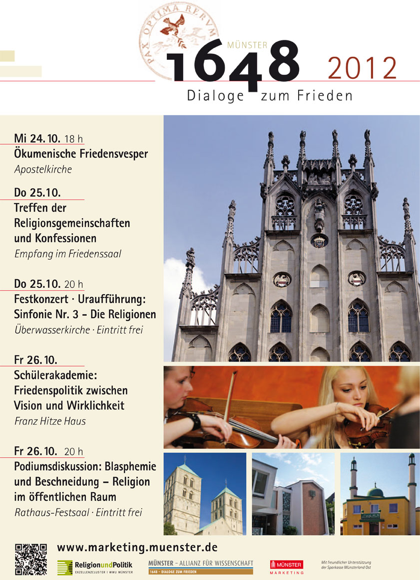 Die Sprecherin des Exzellenzclusters, Historikerin Barbara Stollberg-Rilinger, hob in einer Einführung die Rolle der Medien in Fragen von Blasphemie und Beschneidung, Kreuz oder Kopftuch hervor. „Überall, wo Religion zum Konfliktgegenstand wird, bieten die Massenmedien diesem Konfliktpotenzial einen gigantischen Entfaltungs- und Verstärkungsraum. Kein Anlass ist so geringfügig, dass er nicht zum Gegenstand öffentlicher Empörung gemacht werden kann.“ Wichtig sei eine „sachliche, unaufgeregte Diskussion“. Weltanschauliche Neutralität des Staates bedeute, dass die Freiheit aller Religionen zu garantieren sei. „Religiöse Neutralität ist nicht mit einem aggressiven Säkularismus zu verwechseln, der Religion aus dem öffentlichen Raum verbannt.“