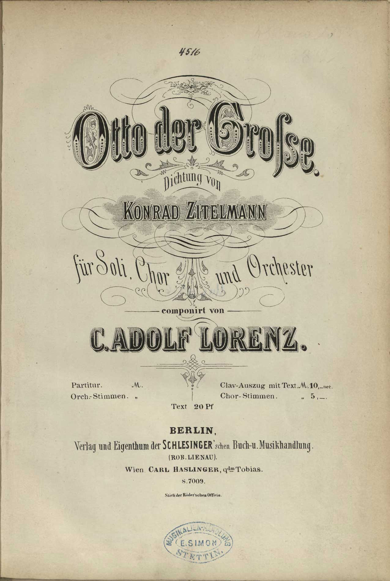 Titelblatt des Oratoriums von Carl Adolf Lorenz