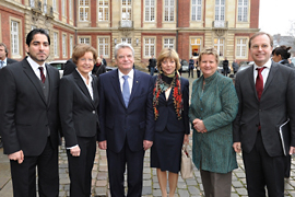 Bundespräsident Joachim Gauck (3.v.l.) mit Prof. Dr. Mouhanad Khorchide (v.l.), Rektorin Prof. Dr. Ursula Nelles, Daniela Schadt, Sylvia Löhrmann und Thomas Rachel