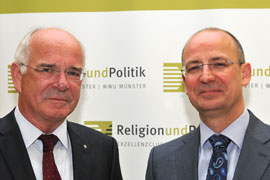 Über die politische Rolle der christlichen Kirchen in der Europäischen Union haben der Präsident der Gemeinschaft Evangelischer Kirchen in Europa (GEKE), der ehemalige Braunschweiger Landesbischof Prof. Dr. Friedrich Weber, und der Politikwissenschaftler Prof. Dr. Ulrich Willems vom Exzellenzcluster „Religion und Politik“ diskutiert. Die Veranstaltung der Reihe „Streitgespräche über Gott und die Welt“ trug den Titel „Europa und die Verantwortung der Religionsgemeinschaften“. Die Referenten sprachen über den besonderen Status, den der Vertrag von Lissabon den Kirchen seit 2009 in der EU zuschreibt, und welche politischen Schlussfolgerungen sich daraus auch im Vergleich zu zivilgesellschaftlichen Organisationen ergeben. Die politische Durchsetzungskraft der Kirchen in der EU-Politik schätzten die Referenten unterschiedlich sein. Als wichtigste politische Aufgabe der Kirchen in der EU nannte Bischof Weber den Einsatz für den Frieden in Europa.
