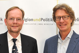 Über das Verhältnis von Physik und Theologie haben der Physiker Prof. Dr. Markus Donath von der WWU Münster und der evangelische Theologe Prof. Dr. Samuel Vollenweider von der Uni Zürich am Exzellenzcluster „Religion und Politik“ diskutiert. Naturwissenschaftliche Einsichten und christliche Weltbilder seien nicht unvereinbar, sagte Physiker Prof. Donath. Die Naturwissenschaften könnten Vorgänge in der Natur beschreiben, aber keine Aussage über Gott machen. „Die Physik findet Antworten auf das ‚wie‘ der Welt, aber nicht auf das ‚warum‘“. Mit Blick auf Sinnfragen stoße das Fach an seine Grenzen. Menschen bräuchten auch das Orientierungswissen anderer Fächer, etwa der Theologie, so Prof. Donath. Er äußerte sich auf dem Podium in der Reihe „Streitgespräche über Gott und die Welt“.