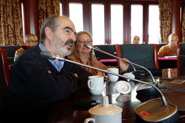 Prof. Dr. Perry Schmidt-Leukel und Prof. Rita Gross beim interreligiösen Dialog im buddhistischen Longquan Kloster