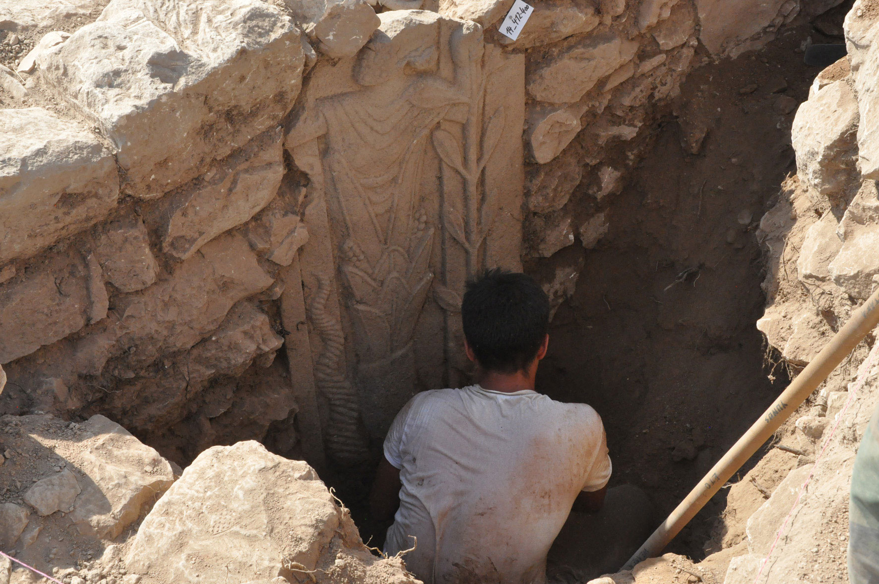 Das Grabungsteam aus 60 Mitarbeitern legte in der Grabungssaison 2014 Funde aus allen Epochen der 2.000-jährigen Geschichte des Kultplatzes frei, etwa die mächtigen Umfassungsmauern des ersten eisenzeitlichen Heiligtums und die Fundamente des römischen Haupttempels des Gottes Iuppiter Dolichenus, der im 2. Jahrhundert nach Christus zu einer der bedeutendsten Gottheiten des Römischen Reiches wurde. Sein Heiligtum liegt auf dem 1.200 Meter hohen Berg Dülük Baba Tepesi nahe der Stadt Gaziantep. Die Stele fanden die Archäologen in den Überresten des christlichen Klosters, das im Frühmittelalter im Areal des antiken Heiligtums errichtet worden war.