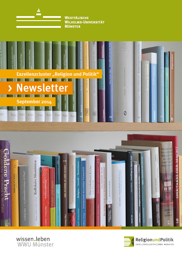 Zum Wintersemester 2014/2015 ist der Newsletter des Exzellenzclusters „Religion und Politik“ mit aktuellen Forschungsergebnissen und einem Ausblick auf kommende Ereignisse wie die neue Ringvorlesung „Zukunftsvisionen zwischen Apokalypse und Utopie“ erschienen. Der Newsletter, der mehr als 2.200 Abonnenten in Politik, Kultur und Religionen zugeht, informiert auch über neun neue Forschungsprojekte, Tagungen, Personalien sowie die intensive Medienarbeit des Exzellenzclusters. Darüber hinaus zeigt er, wie Mitglieder des Exzellenzclusters wissenschaftliche Ergebnisse in Ausstellungen und einem Dokumentarfilm vorstellten.