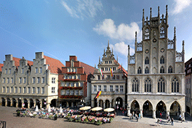 Mit Friedensmahl und Festakt feiert die Stadt Münster am Freitag, 15. Mai, die Auszeichnung der Rathäuser von Münster und Osnabrück mit dem Europäischen Kulturerbe-Siegel (EKS). Historikerin Prof. Dr. Barbara Stollberg-Rilinger vom Exzellenzcluster „Religion und Politik“ wird im Rahmen der Feierlichkeiten auf dem Prinzipalmarkt einen Festvortrag zum Thema „Münster und der Westfälische Frieden“ halten. Grußworte sprechen Kulturstaatsministerin Prof. Monika Grütters, NRW-Wissenschaftsministerin Svenja Schulze, die deutsche Vertreterin im UNESCO-Welterbekomitee, Dr. Birgitta Ringbeck, und die Oberbürgermeister von Münster und Osnabrück, Markus Lewe und Wolfgang Griesert. Die Rathäuser waren am 15. April in Brüssel als „Stätten des Westfälischen Friedens“ ausgezeichnet worden.