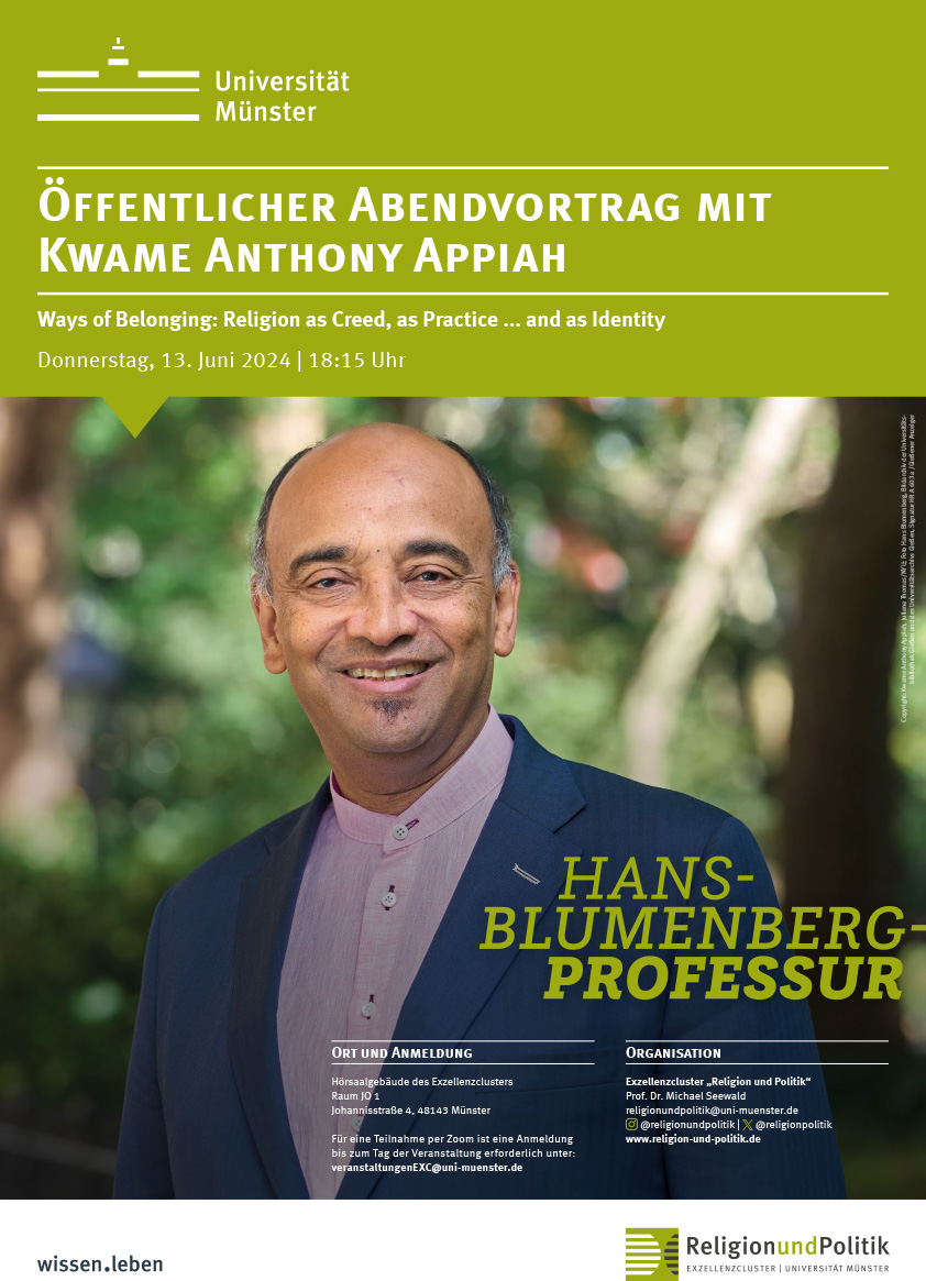 Blumenberg-Vortrag von Kwame Anthony Appiah „Ways of Belonging: Religion as Creed, as Practice ... and as Identity“ (Vortrag in englischer Sprache)