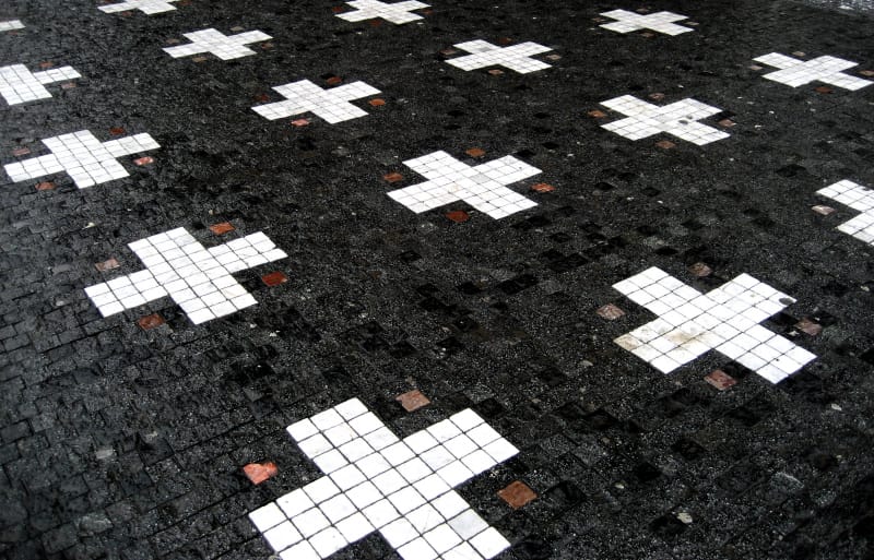Abb. 6: Prag, Kreuze zum Gedächtnis an die Opfer des Blutgerichts im Pflaster vor dem Altstädter Rathaus© Christian Bredfeldt, CC BY-NC-ND 2.0