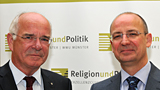 Über die politische Rolle der christlichen Kirchen in der Europäischen Union haben der Präsident der Gemeinschaft Evangelischer Kirchen in Europa (GEKE), der ehemalige Braunschweiger Landesbischof Prof. Dr. Friedrich Weber, und der Politikwissenschaftler Prof. Dr. Ulrich Willems vom Exzellenzcluster diskutiert. Die Veranstaltung der Reihe „Streitgespräche über Gott und die Welt“ trug den Titel „Europa und die Verantwortung der Religionsgemeinschaften“. Die Referenten sprachen über den besonderen Status, den der Vertrag von Lissabon den Kirchen seit 2009 in der EU zuschreibt, und welche politischen Schlussfolgerungen sich daraus auch im Vergleich zu zivilgesellschaftlichen Organisationen ergeben. Die politische Durchsetzungskraft der Kirchen in der EU-Politik schätzten die Referenten unterschiedlich sein. Als wichtigste politische Aufgabe der Kirchen in der EU nannte Bischof Weber den Einsatz für den Frieden in Europa. Moderator des Abends war der evangelische Theologe und Mit-Organisator der Reihe Prof. Dr. Reinhard Achenbach vom Exzellenzcluster.