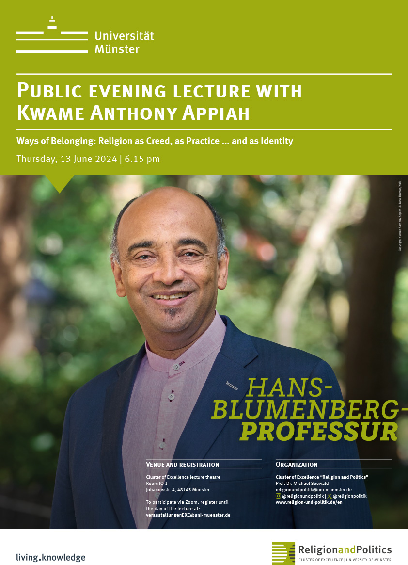 According to US philosopher Kwame Anthony Appiah, religious conflicts can be resolved through a pluralistic understanding of religious identities. “It is inevitable for societies to be multireligious today, and each community and each person should be able to follow their own path in terms of religious identity”, said the Blumenberg Professor at the University of Münster’s Cluster of Excellence “Religion and Politics” on Thursday evening. However, Appiah pointed out that this should not be equated with relativism. “I can think that my path is the correct one, while at the same time believe that another person is allowed to follow their path, even if I think it is incorrect. For me, that is the core of a cosmopolitan attitude. However, it requires a goodwill that is not necessarily widespread”.