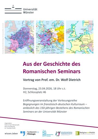 Das Proseminar 094915 Einführung in das Werk Gustave Flauberts (Dienstag, 08.00–10.00 Uhr) bei Frau Frieda Schulze Dephoff findet ab dem 28.04.2026 im Raum BB 1 (Bispinghof 2) statt.