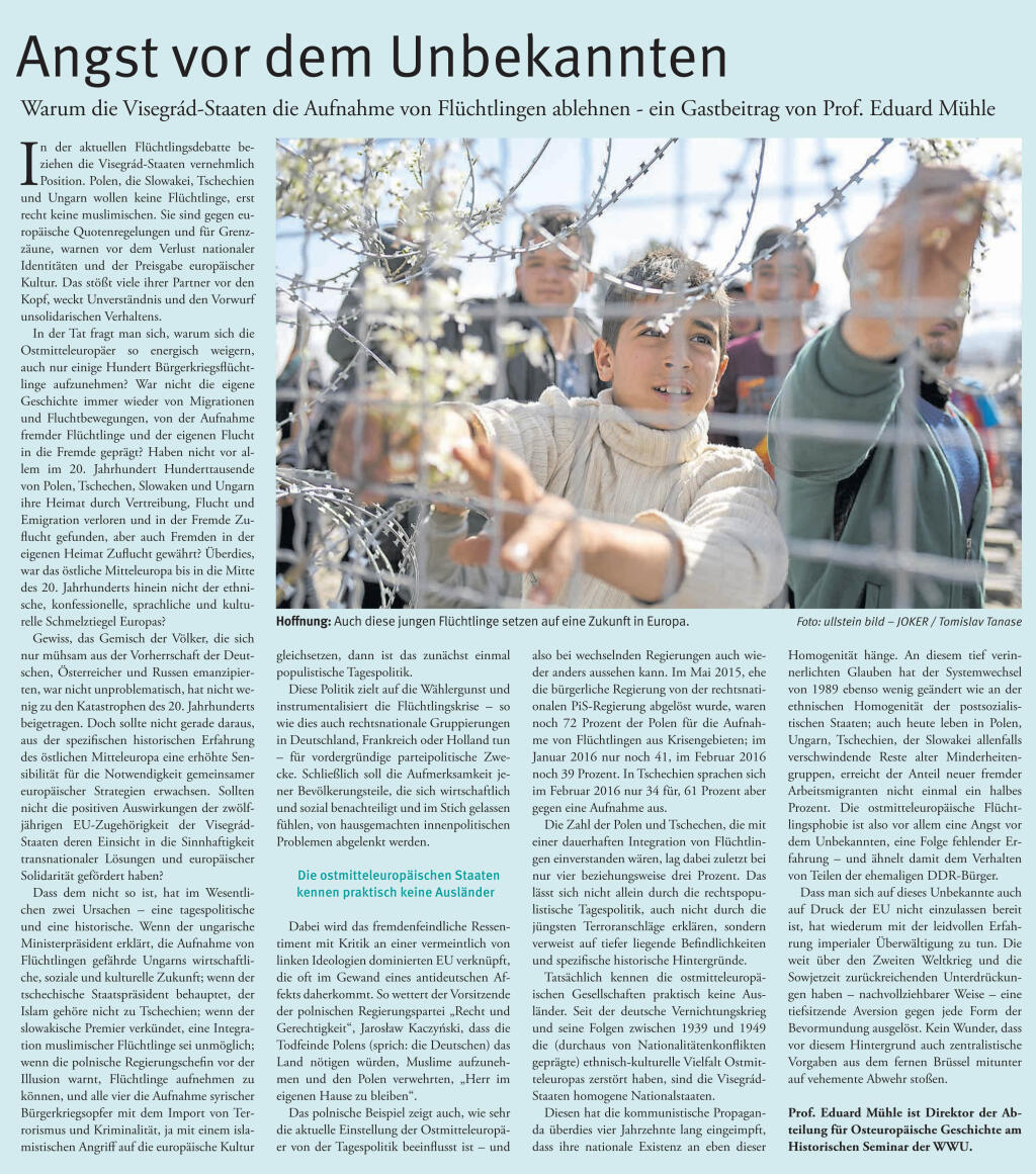 Warum die Visegrád-Staaten die Aufnahme von Flüchtlingen ablehnen - ein Gastbeitrag von Prof. Eduard Mühle