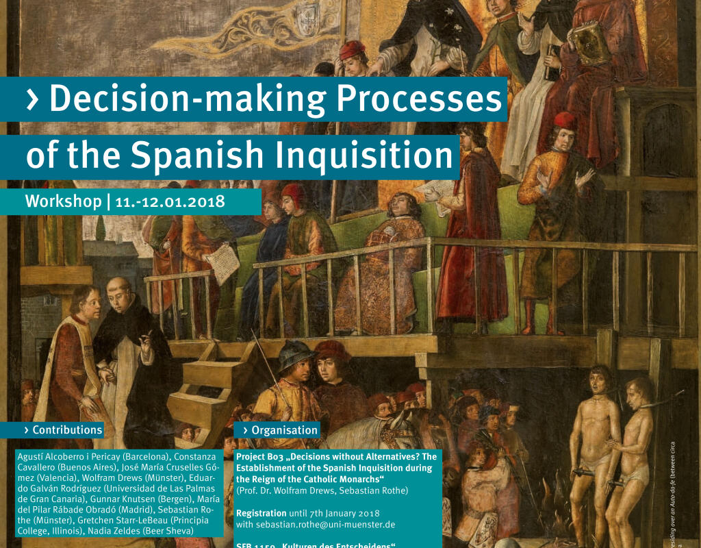 The international and interdisciplinary workshop will question these narratives by considering inquisitorial decision-making from the perspective of cultural history, regarding it as a specific form of social interaction. In this respect, the inquisition’s founding period under the reign of the Catholic Monarchs is of special interest as we cannot only observe the activities of historical actors and institutions that participated in the inquisitorial proceedings, but also of those involved in establishing the inquisition and expanding its competences.