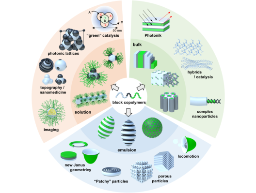 Über unsere Forschung: „Unsere Gruppe ist auf funktionelle weiche Nanostrukturen, hergestellt aus Polymeren und Kolloiden, spezialisiert. Unsere Forschung umfasst alle Aspekte der Polymer- und Kolloidsynthese einschließlich kontrollierter Polymerisationsarten (ATRP, RAFT, anionisch) und Emulsionspolymerisationstechniken. Wir entwerfen Polymerarchitekturen (mit Fokus auf Blockcopolymeren), komplexe Kolloide und organisch/anorganische Hybridmaterialien. Wir nutzen diese Bausteine und entwickeln Selbstorganisationskonzepte für nano-, meso- und mikroskalige Materialien entweder in Masse, in beengten Räumen oder in Lösung. Markenzeichen unserer Gruppe sind ABC Triblock Terpolymere, Multikompartiment-Mizellen, Janus-Nanopartikel, organische mesoporöse Mikropartikel und Nanoreaktoren. Diese Materialien finden Anwendung in der Nanomedizin, der Oberflächenstrukturierung, der Manipulation von Grenzflächen, der Katalyse und der Energieumwandlung.“