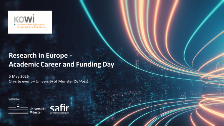Organised by the EU Liaison Office of the German Research Organisations (KoWi) and Research Funding Support (SAFIR) of the University of Münster, the event will take place on 5 May 2026, 9am–4.15pm, at the Schloss (main University building) in Münster.
