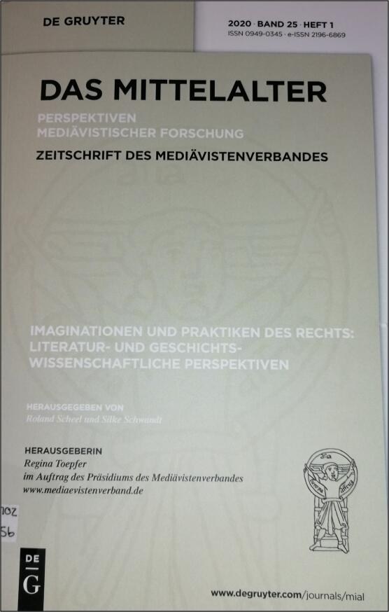 - Das Mittelalter 25:1 (2020). Imaginationen und Praktiken des Rechts. Literatur- und geschichtswissenschaftliche Perspektiven, hrsg. von Roland Scheel und Silke Schwandt.