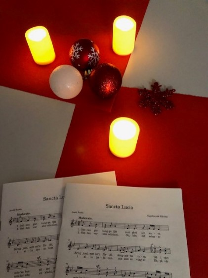 Am 12. Dezember fand wieder unser alljährliches Lucia-Fest statt. Feierlich eröffnet wurde die Feier mit dem Einzug unseres frisch entstandenen aber liebenswerten Lucia-Chores und einer Begrüßung durch Prof. Roland Scheel sowie gemeinsamem Singen. Natürlich gehörte auch wieder ein skandinavisches Mitbring-Buffet dazu, mit Lussekatter, pepparkakor, Glögg (danke an die Fachschaft!) und vielem mehr. Einen Höhepunkt des Abends bildete wie immer die norwegische Weihnachtsgeschichte „Snekker Andersen“, vorgelesen von unserem Norwegisch-Dozenten Magnus. Wir danken allen Helfer*innen und freuen uns schon sehr aufs nächste Jahr!