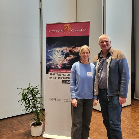 Bei der Tagung der DGfE-Kommission Sportpädagogik in Osnabrück war das Sportinstitut durch JProf. Dr. Helga Leineweber und Prof. Dr. Nils Neuber vertreten. Das Tagungsprogramm widmete sich übergreifend der Frage, inwieweit aktuelle gesellschaftliche Herausforderungen Einfluss auf die Sportpädagogik nehmen und diese unter Transformationsdruck setzen. Helga Leineweber hielt dazu gemeinsam mit Prof. Dr. Sabine Reuker von der Deutschen Sporthochschule Köln einen Vortrag zur diversitätssensiblen Unterrichtswahrnehmung – eine professionelle Anforderung, die gerade auch für Sportlehrkräfte relevant ist. Außerdem wurden in Form eines Posters Ergebnisse aus dem Projekt ComeSport vorgestellt, in dem die Arbeitsbereiche Bildung und Kultur im Sport sowie Bildung und Unterricht im Sport gemeinsam das Themenfeld ‚Körperbilder und Social Media‘ bearbeiten und für die Fortbildung von Sportlehrkräften sowie den Sportunterricht aufbereiten.