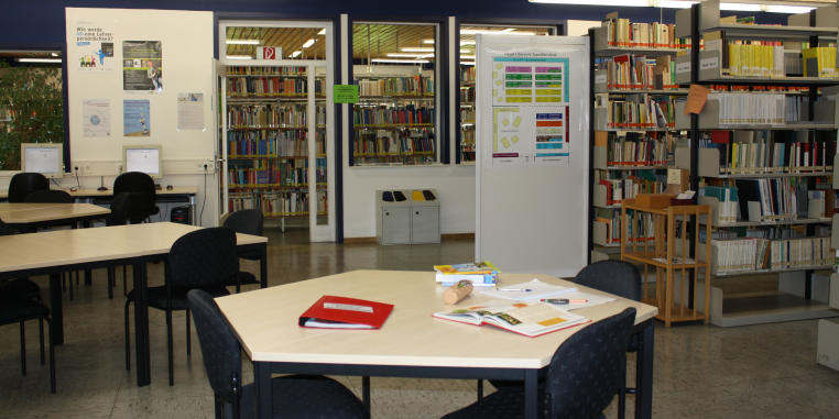 Die Bibliothek bietet auf über 400 Quadratmetern verschiedenste Angebote zum Arbeiten und Lernen. Gruppenarbeitsräume für Referatsgruppen oder Besprechungen und einem PC-Arbeitsplatz, der neben dem Internet-Zugang auch die gebräuchlichen Office-Programme und Multimedia-Anwendungen bietet. Im hinteren Bereich der Bibliothek werden 20 Einzelplätze zum stillen Arbeiten und Lernen in der Bibliothek angeboten.