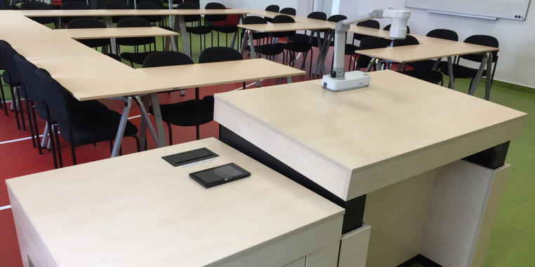 Nach einer Planungs- und Umbauphase von etwas mehr als einem Jahr hat das Lernatelier des Instituts für Sportwissenschaft im Raum Ho 101 im April 2018 seine Pforten in neuem Glanz für den Lehrbetrieb geöffnet. Mit dem Beginn des Sommersemesters bietet es den Studierenden und Lehrkräften des Instituts für Sportwissenschaft modernste Präsentations- und Lehrtechnik in einem komplett sanierten, lernförderlichen Ambiente, das auch gestalterisch deutliche Bezüge zum Sport aufweist. Das Konzept des Lernateliers stammt von Markus Jürgens und Prof. Nils Neuber. Sebastian Grade hat den Umbau gemeinsam mit dem Dezernat 2 intensiv begleitet.