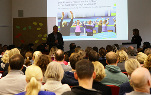 Im Rahmen des 26. Münsteraner Schulsportgesprächs hielt Prof. Dr. David Wiesche von der Universität Duisburg-Essen einen Vortrag zum Thema „Zwischen Stolz und Scham - Emotionales Erleben im Sportunterricht“. Über 60 Teilnehmer*innen aus allen Phasen der Sportlehrkräftebildung nutzten die Gelegenheit zur Diskussion im Anschluss an den Vortrag intensiv. Axel Binnenbruck (Organisation) und Prof. Dr. Nils Neuber (Leitung) freuten sich über die gelungene Veranstaltung.