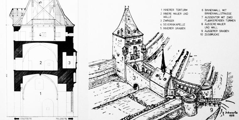 5. vor dem Fallgitter eine Zugbrücke, die den Stadtgraben passierbar machen konnte