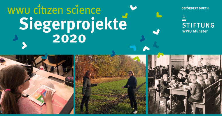 Im Citizen-Science-Wettbewerb 2020 wählte die Jury folgende Projekte aus: „Monitoring moderner Agroforst-Ökosysteme“ und „Kinderkuren in Westfalen“. Sie zeichnen sich durch eine starke Bürger-Einbindung, hohe gesellschaftliche Relevanz und ein innovatives Forschungsdesign aus - beide Projekte werden mit jeweils 7.500 Euro von der Universitätsstiftung Münster unterstützt. Zusätzlich wurde ein mit 1.000 Euro dotierter Publikumspreis für das Projekt „Peer-to-Peer-Videos im bilingualen Unterricht“ vergeben, der ebenfalls von der Universitätsstiftung Münster finanziert wird.